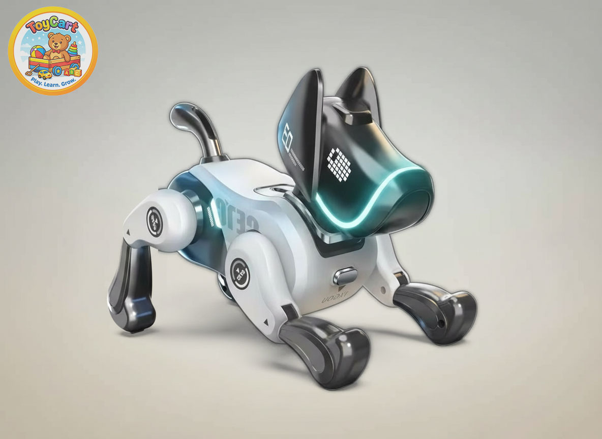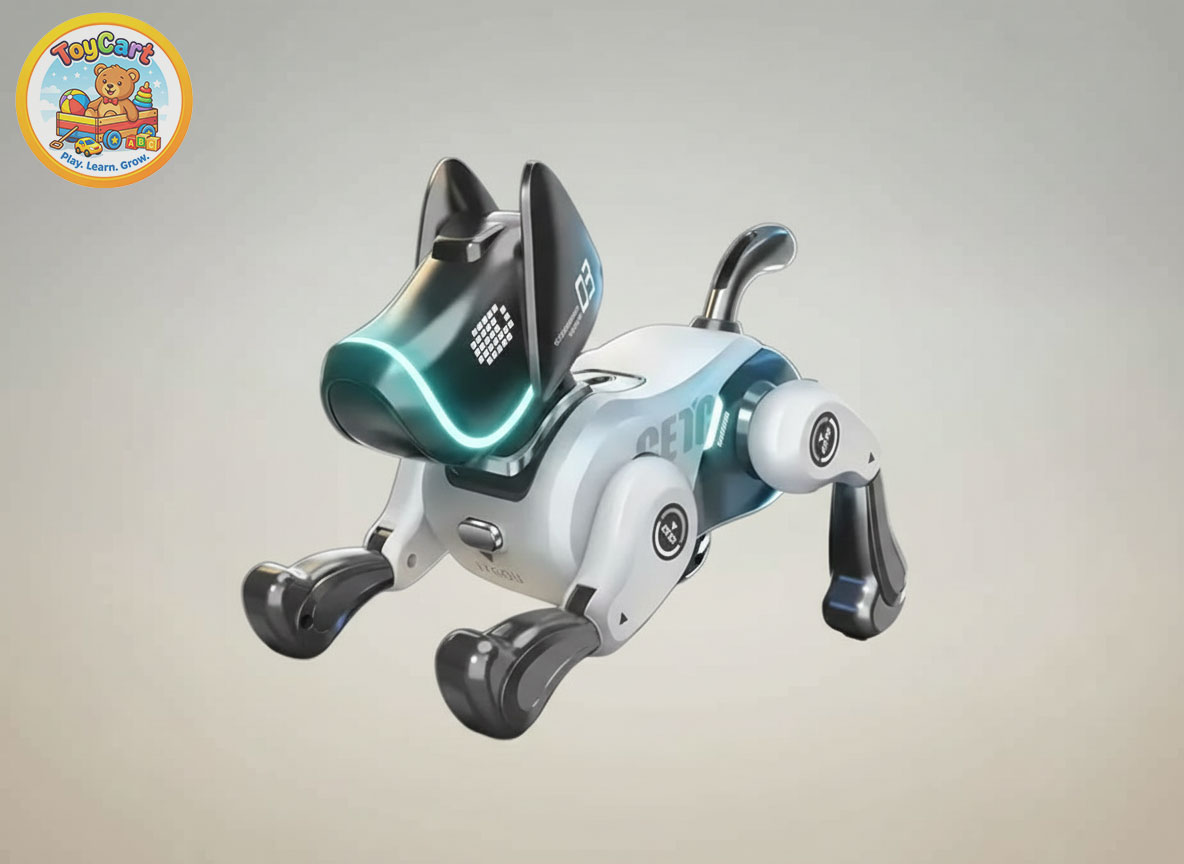 This interactive robotic puppy is designed to walk, move, and light up, making playtime exciting and engaging for kids. With its modern design and glowing LED features, it looks like a real high-tech pet that kids will love.